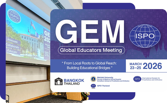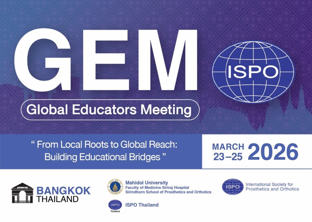 The ISPO Global Educators Meeting (GEM) aims at gathering P&O educators and administrators, NGOs involved in education, accrediting bodies and interested industry representatives from all over the world to discuss, coordinate, initiate and share P&O education-related activities. In particular, the GEM assumes as its main objective the improvement of communication and collaboration between P&O schools across the globe.